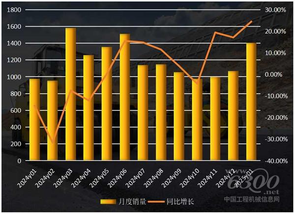 中国工程机械工业协会1月份压路机销量数据出炉,总销量1407台,创下最近7个月来的新高,同比24.50%的增幅,则是2022年以来的新高,主要的增长动力来自海外。2024全年,压路机出口持续高光表现,出口销量同比增幅每月均保持在49%以上,展现出强劲的增长势头。