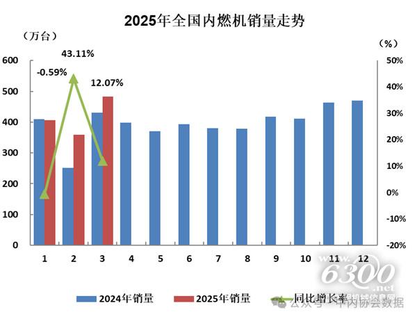 2025年3月内燃机行业整机销量环比、同比、累计同比均呈增长态势,一季度内燃机行业开局运行良好。