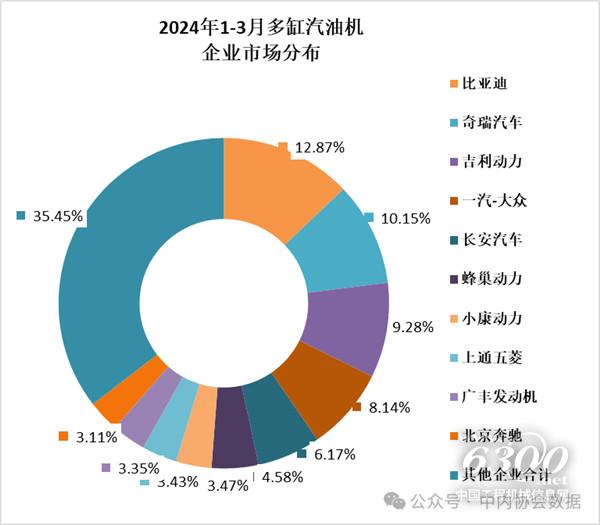3月多缸汽油机销量179.32万台,环比增长32.34%,同比增长-0.36%;1-3月累计销量467.39万台,同比增长6.35%。在44家多缸汽油机企业中比亚迪、奇瑞、吉利、一汽-大众、长安汽车、蜂巢动力、小康动力、上通五菱、广丰发动机、北京奔驰销量排在前列,占总销量的64.55%。在销量较多的企业中,比亚迪、吉利、小康动力、上通五菱销量增势表现突出。