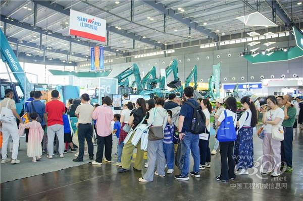 此次山河智能室内室外三大展区展出桩工机械、土方机械、高空机械、矿山设备、应急救援设备、通航设备等众多产品,靓丽的“山河绿”风景线吸引了众多专家领导、行业客户和观众的目光,国内外参观团、媒体记者等纷至沓来,现场人流如织,还有不少用户来到山河智能直播间,和特邀嘉宾一起云打卡。