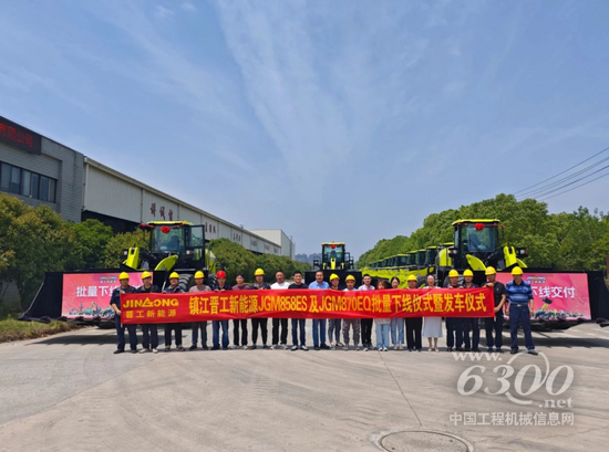 5月19日,晋工新能源在江苏镇江工厂举行新款电动装载机JGM858ES、JGM870EQ批量下线交付仪式。