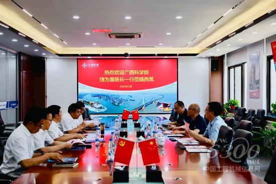 刘宏伟对饶为国一行的到访表示欢迎,详细介绍了西筑的发展历程、主营业务布局及科技创新成果。他表示,西筑始终秉持创新发展思路,在筑养路机械设备绿智化升级、隧道施工设备成套化研发、智慧工地系统开发等领域不断探索。广西科学院作为开展关键战略性、基础性、前瞻性重大科技问题研究的综合性科学研究机构,拥有多个国家级创新平台,在施工装备智能化、绿色材料研发及成果转化等方面具有显著优势。希望能与广西科学院加强交流,形成基础研究技术开发产业应用的全链条创新体系,有效推动产学研深度融合。