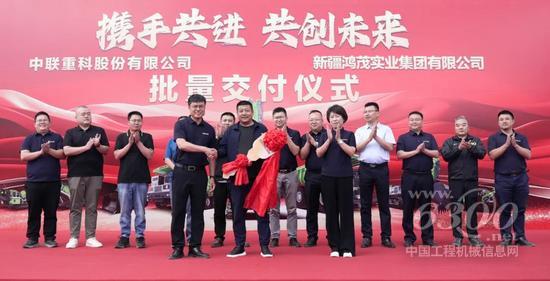 近日,在新疆壮丽的天山脚下,中联重科隆重举行大型矿山机械设备批量交付仪式,向战略合作伙伴新疆鸿茂实业集团(以下简称:新疆鸿茂)交付包含全球最大混动宽体车ZT160HEV、百吨级矿挖E1350G在内的数百台高端装备。中联重科副总裁袁野、副总裁黄群出席活动,并向新疆鸿茂交付象征合作共赢的金钥匙。