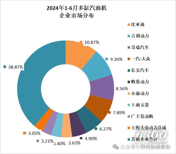 乘用车用在多缸汽油机占比为96.77%,6月销量156.66万台,环比增长7.05%,同比增长2.45%;1-6月累计销量916.02万台,同比增长4.55%。比亚迪、吉利、奇瑞、一汽-大众、长安汽车、蜂巢动力、小康动力、上通五菱、广丰发动机、上海大众动力总成销量排在前列。