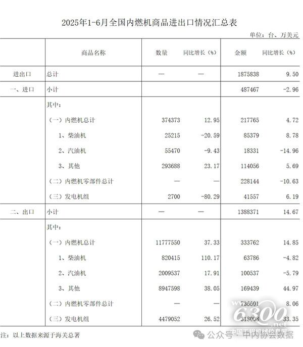 二、出口金额中,柴油机、汽油机同比下降,其余各细分类型均同比增长。具体为: