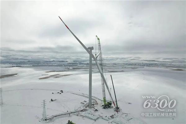 ▲中联重科起重机在雪天助建世界超高海拔地区规模最大的风电项目——西藏那曲欧玛亭嘎风电场