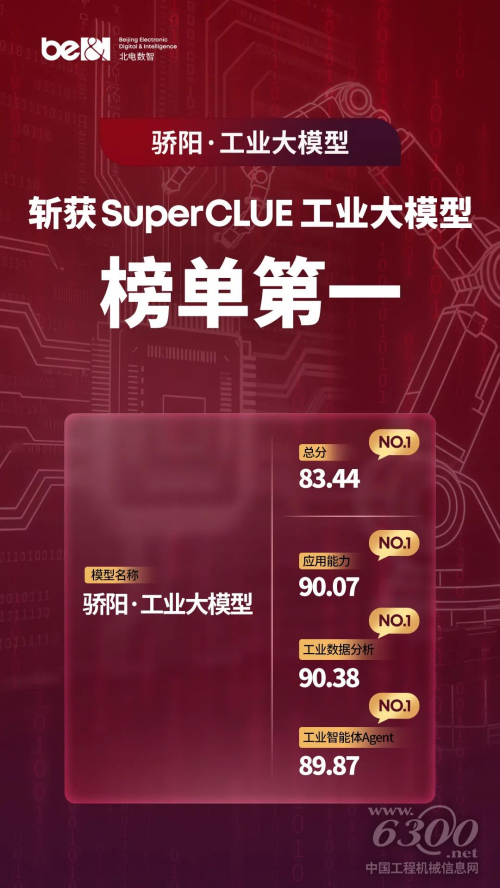 日前,2025世界人工智能大会“智造融合:AI驱动工业范式变革”主题论坛上,北电数智正式发布了一款应用能力领先的工业领域垂类大模型——骄阳・工业大模型。值得一提的是,在近期国内权威第三方评测机构SuperCLUE发布的中文原生工业大模型测评基准SC-Industry最新榜单中,北电数智骄阳・工业大模型,以83.44的总分位居综合排名第一,且在“应用能力”维度及“工业数据分析”“工业智能体Agent”两个子项能力上均拔得头筹。