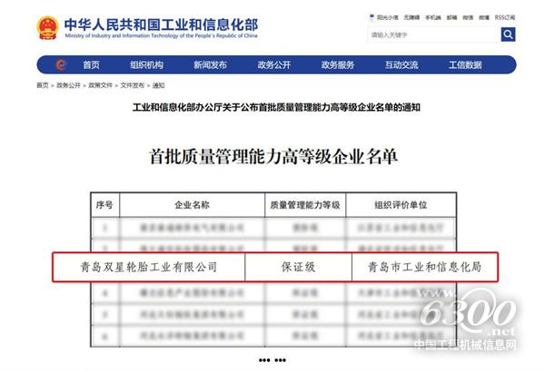 近日,工业和信息化部公布了全国首批质量管理能力高等级企业名单。双星轮胎凭借以数字化提升企业质量管理水平、促进行业健康高质量发展的突出成绩成功入选,成为中国轮胎行业唯一入选企业,树立行业新标杆的同时,推动中国制造业向“卓越质量”加速迈进。