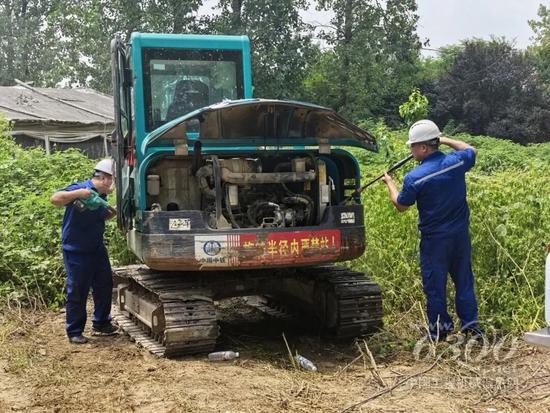 在施工现场,服务团队顶着烈日,对每台设备进行全面检查,重点清洁散热器等关键部件,减少潜在故障风险。同时,服务人员结合设备实际运行工况,向客户详细讲解日常维护要点,并针对具体施工环境提出优化使用建议,帮助客户提升设备作业效率。