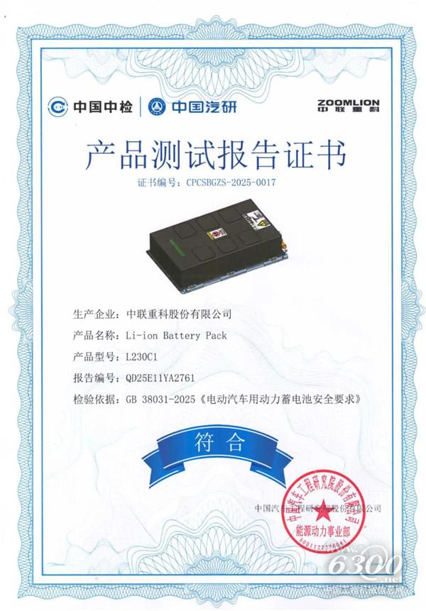 近日,中联重科自主研发的系列化动力电池成功通过强制性国标GB38031-2025《电动汽车用动力蓄电池安全要求》全部测试,成为行业首批满足新国标的动力电池产品。凭借在绿色化、电动化方面的前瞻技术布局,中联重科为新能源工程机械安全性能树立全新基准。
