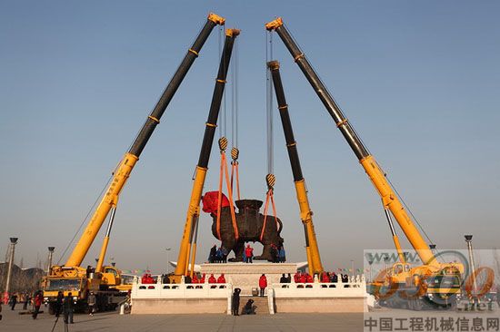 3月26日清晨,六台徐工QAY300、QAY200等大吨位起重机与四宝之一的铁狮子同时出现在沧州狮城公园里。在起重机群共同作业下,历时3个小时,铁狮子安稳地垂放在基座上。当铁狮子除去周身的吊装保护装置后,露出了威武雄壮神奇非凡的豪气,见证了这一历史时刻,现场一片欢腾。