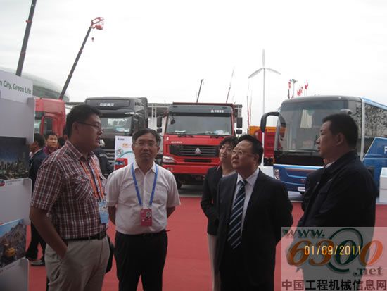 山东省省长助理陈光一行视察临工展位,听取工作人员相关汇报