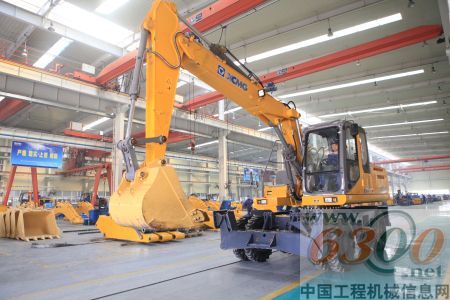 轮式挖掘机多应用于路政及市内工程,在欧美等发达国家一直倍受青睐。XE150W是徐工集团独立研发的轮胎式液压挖掘机,集汽车的机动灵活及履带式挖掘机的作业高效等优点于一体。产品整机采用两桥越野底盘,四轮驱动方式、配置应急转向系统,提高了整机的安全性;采用的两节动臂技术,则特别适应狭小场区的作业。其中“两节动臂微控调节系统”、“摆动式、可刚性锁止的液压悬架技术” 、“正反向、多档位控制系统 ”等多项国家前沿技术的创新应用填补了国内空白,打破了国外企业的技术垄断,彰显了徐工品牌的王者风范。同时提升了民族品牌在国际工程机械市场的影响,带动了相关配套产业的发展。