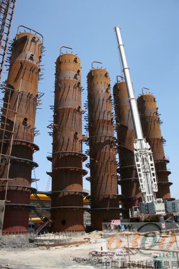 “说实话,这个项目对于AC500-2全路面完全是大材小用”,于氏飞龙总经理于兵兵介绍说:“这9个焦化炉高度均为37米,单体重量为50吨,根本不需要AC500-2。但这次的工程进度要求比较紧,工程的安全要求又极高,所以我们最终还是决定使用新引进的这台特雷克斯AC500-2。从5月8日至今,我们已经安装了5个焦化炉,基本3-4小时完成一个焦化炉的整体安装,安装过程非常顺利,没有出现任何问题,完全达到了我们预期的效果。” 在该项施工中,这台AC500-2的吊装高度最高达到了56米,吊装半径为21米,侧面吊装半径为14米,支腿伸出达到9.6米,没有进行超起作业。