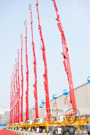 红色的巨臂高高擎起,鲜艳的空飘迎风飘扬。徐工混凝土机械基地隆重竣工投产,嘉宾满座,客户云集,欢声笑语,鼓乐震天,恢弘的厂房、明亮玻璃幕墙与蓝天、鲜花和一排排整齐划一的徐工设备交相辉映。以“新格局、新腾飞”为主题的“徐工集团全地面起重机、装载机智能化、混凝土泵送机械、混凝土搅拌机械制造基地竣工投产暨产品下线仪式”正在这里隆重举行。
