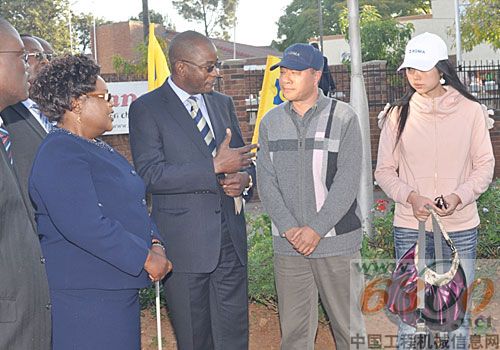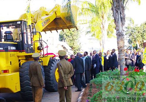XGMA经销商董事长和大股东MOSES向副总统介绍厦工展机 左二为副总统Mujuru女士