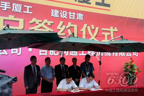 6月20日,在第十九届“兰洽会”厦工展场上,厦门厦工携手经销合作伙伴合肥润通甘肃营销中心与兰州明昊路桥公司举行一次性采购50台厦工挖掘机的签约仪式。甘肃省经济合作局副局长赵涛、厦门市商务局副书记周山华、兰州朋昊路桥有限公司总经理郭仁民、合肥润通工程机械有限公司总经理陆海洲、厦门厦工国内营销中心常