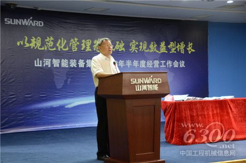 会议以“激情互助,赢在路上”为主题,总结上半年山河智能挖掘机的经营情况。经过全体经销商的共同努力,在行业总体同比下滑13.8%(1-5月)的情况下,山河智能挖掘机销售与上半年同比增长较快,市场地位有所提升。会议通过对经济情况分析,以及各标杆经销商的经验分享,使大家对中大挖的销售信心增强,均表示以更加优质的服务,在各团队的共同努力下,一定可以圆满完成全年的销售计划。