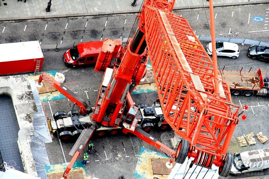 由于起重机在先贤祠四周作业,起重机操作员在每次起重时必须重新调整其位置。这是选择起重机配置时需要考虑的一个主要问题,因为每次重新定位时部分拆卸起重机所需的时间会严重影响到项目的整体进度。由于 AC 700 可以在完整装配的情况下工地内移动,Ponticelli 的作业小组在选定配置后,只需要拆卸 80 吨的配重便可移动起重机。