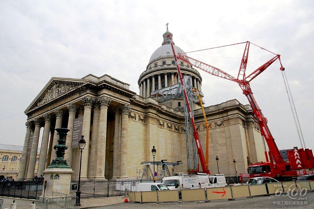 法国巴黎,2013 年 12 月——先贤祠气势宏大的石柱之上镌刻着一行铭文“献给伟大的人们,祖国感念你们”。在这座最负盛名的建筑丰碑的修复过程中,法国建筑集团 Ponticelli 调用了旗下的 Terex® AC 700 全路面起重机,帮助提升一个复杂的脚手架结构。