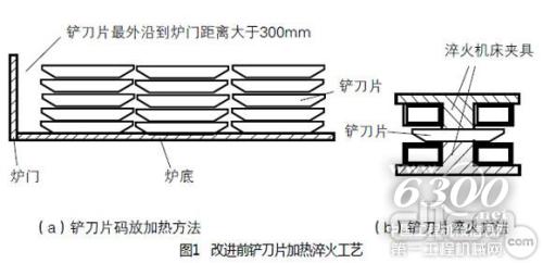 改进前,推土机铲刀片加热淬火工艺采用箱式电阻加热炉加热。箱式电阻加热炉利用电阻元件把电能转变成热能,将铲刀片在炉内加热并保温。保温完成后将铲刀片出炉,用淬火机床冷却铲刀片,完成淬火工艺。