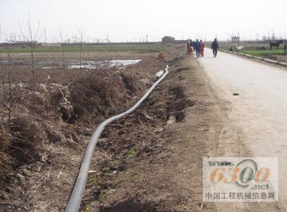 4)使钢丝绳处于无载荷状态,移开机器,拆卸连接件,将机器分成三个部分,依次从钢丝绳远端移出。此时可看到新PE管线一端出现在机器工作坑内,工程圆满结束。