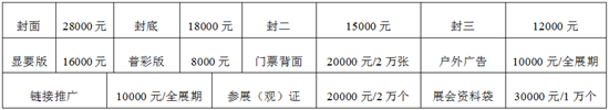 链接推广10000元/全展期参展(观)证20000元/2万个展会资料袋30000元/1万个