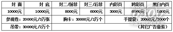 为了配合展商在展览期间宣传及让客户了解展商并在会后能与之沟通联系,组委会将精心编印大会会刊,会刊规格:145mm×210mm. 大会会刊及其它广告收费标准