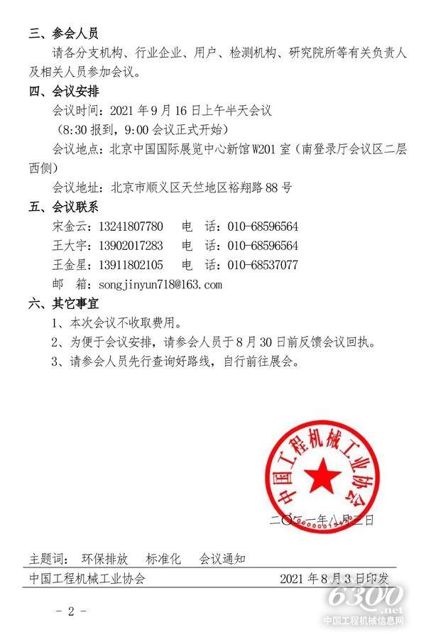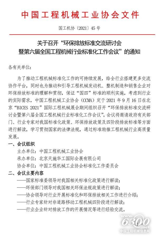 关于召开“环保排放标准交流研讨会暨第六届全国工程机械行业标准化工作会议”的通知