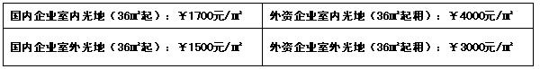 2、光地(不低于36 m²起租);配置:展出场地、保安服务、公共责任保险、无任何设施