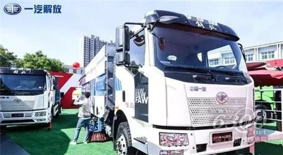 一汽解放共携带8款车型参展,包括渣土车、混凝土泵车、垃圾清运车、混凝土搅拌车、纯电动物流车等车型。