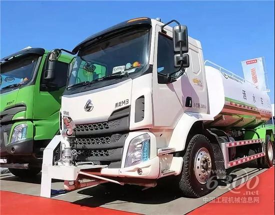 以国六和天然气动力为主题的柳汽乘龙,带了4台乘龙卡车参展,一款乘龙H7天然气渣土车、一款乘龙H5国六自卸车底盘、一款乘龙H5国六牵引车和一款新乘龙M3国六洒水车。
