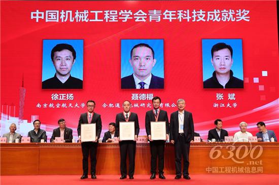 李培根理事长向徐正扬、聂德福、张斌颁发2019年度中国机械工程学会青年科技成就奖