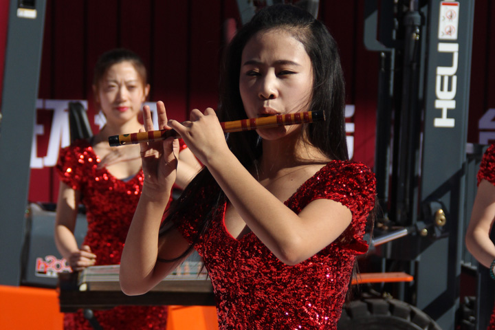 展会上的精彩表演,美女很忙